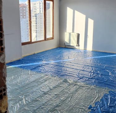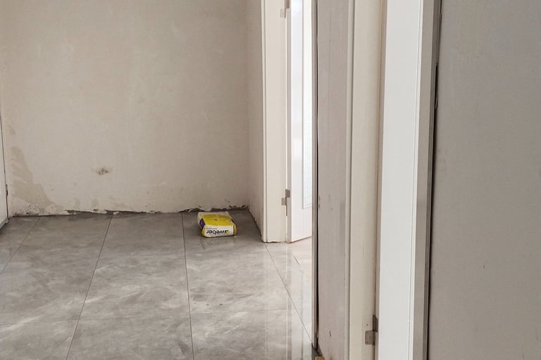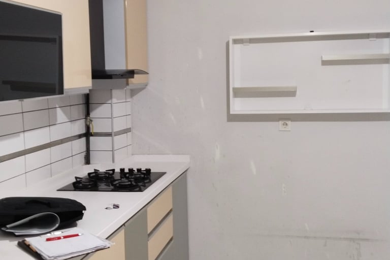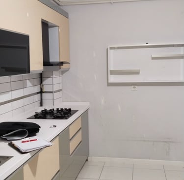 İlk keşfimizde, müşteri ile görüşerek tadilat taleplerini not aldık, ölçüleri belirledik ve fiyat çalışması yaptık. Yapılacak işler arasında kombinin mutfaktan balkona taşınması, mutfak dolaplarının yenilenmesi, zemin fayansı ve asma tavanın yapılması, koridorda vestiyerin yenilenmesi, zemin fayanslarının değişimi, salon, koridor ve oturma odasındaki duvar kağıtlarının sökülüp saten alçı çekilerek yeniden boyanması, banyonun tamamen yenilenmesi ve kapıların değişimi yer aldı.