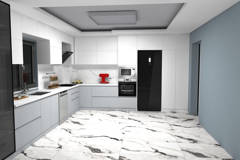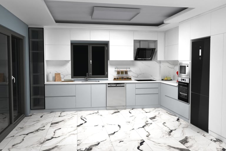 Müşterimizle fiyatta anlaştıktan sonra hızla çalışmalara başladık. Öncelikle 3 boyutlu çizimler oluşturduk ve bu çizimlere göre planlamamızı yaparak işe koyulduk. Evin boş olması, çalışmalarımızı hızlı ve rahat bir şekilde tamamlamamıza olanak sağladı.